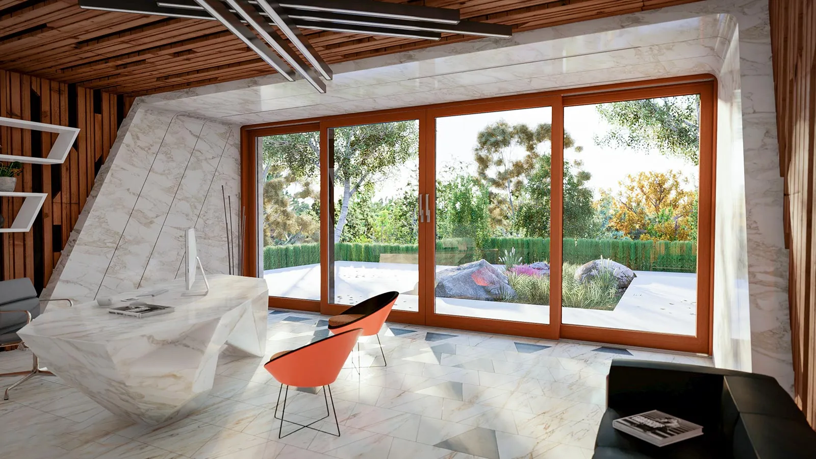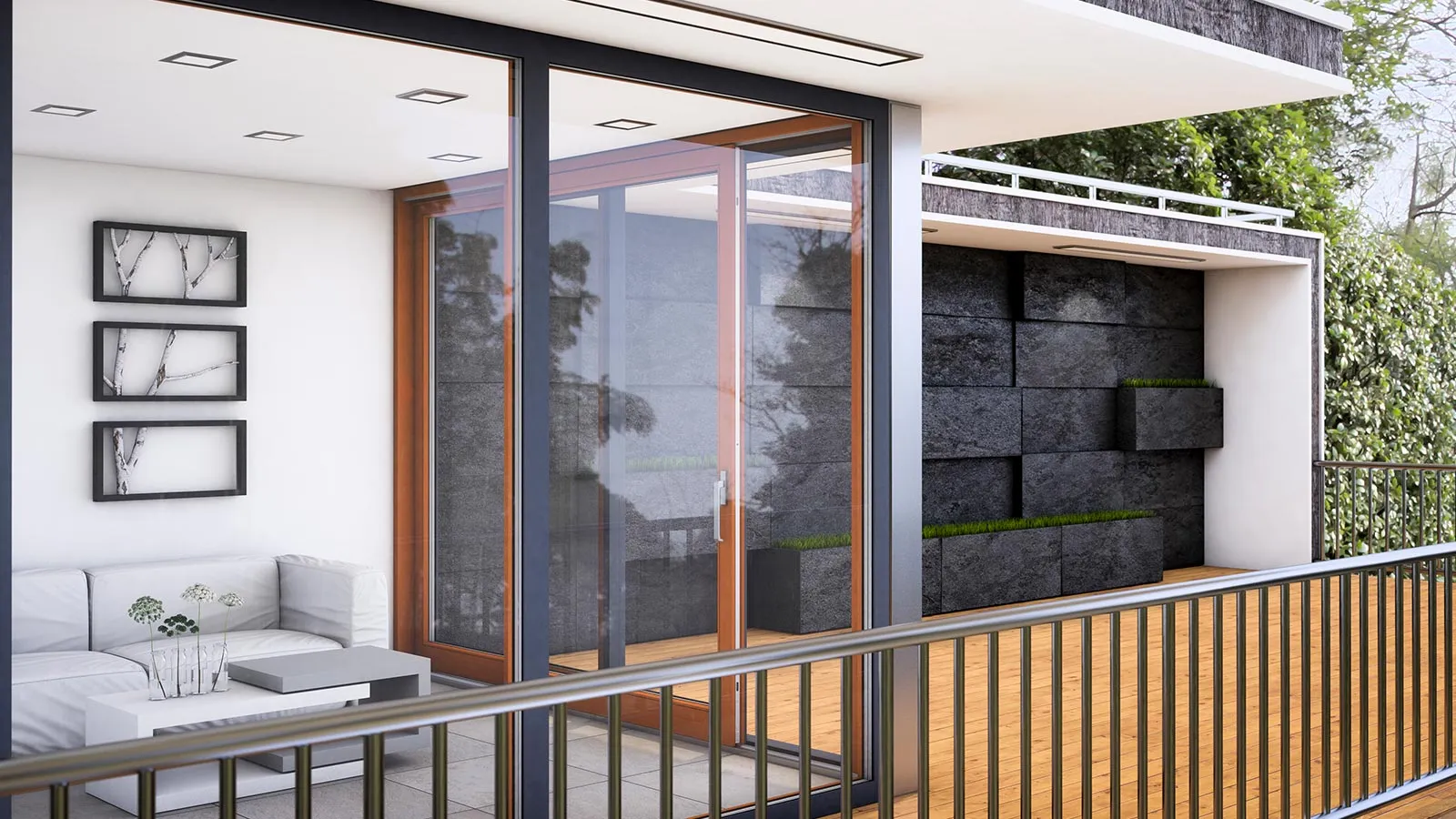 Połączenie ponadczasowego piękna drewna i lekkiego, a zarazem bardzo wytrzymałego aluminium pozwoliły na stworzenie unikalnego systemu tarasowego z drzwiami podnoszono-przesuwnym. To klasyka i nowoczesność zarazem.